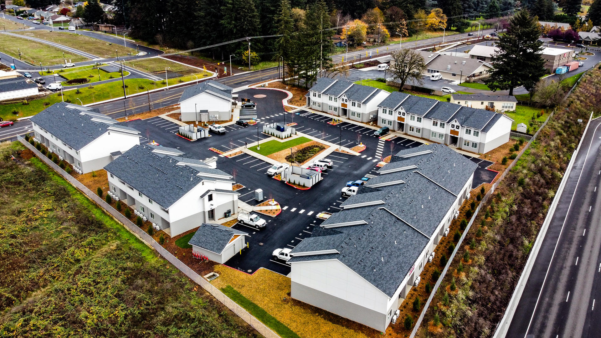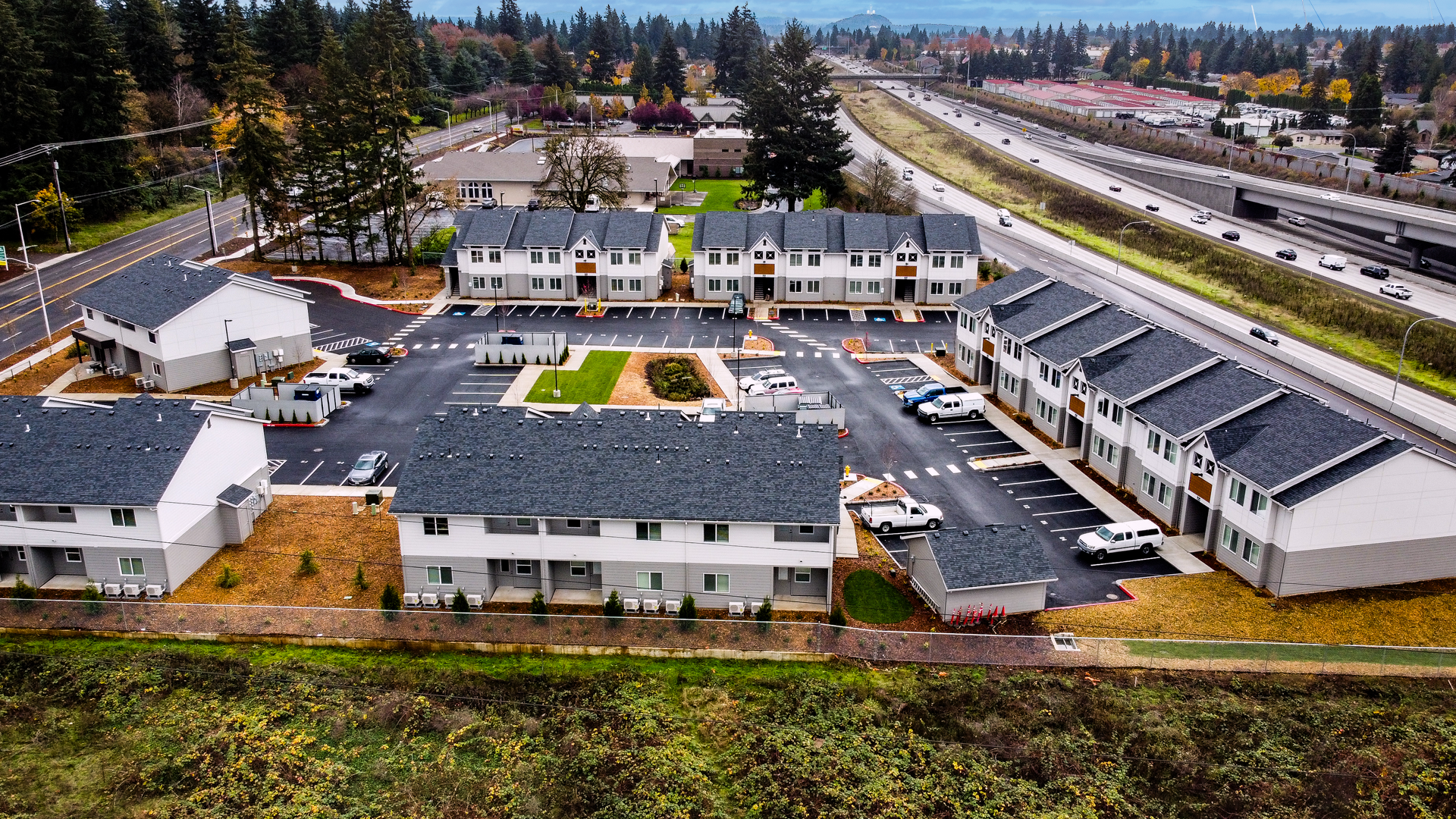 Pioneer Village is a 10-acre mixed-use commercial property development in Ridgefield, Washington consisting of 16 buildings on the SW corner of Pioneer St & South Royle Road. Collectively providing over 65,000 SF of new retail & office space. Designed to create a walkable community area with flexibility to adapt to changing community and market requirements over time. Exterior design features include a mix of Western-Style façades and Barn-Inspired architecture. A mix of modern fiber cement siding and lumber post & beam details brings the contemporary performance and durability to Ridgefield’s more rural roots. These versatile and inviting spaces have created additional value immediately off i5 and reinforced the Ridgefield characteristically close-knit community feel as an extension of the Historic Downtown Ridgefield.